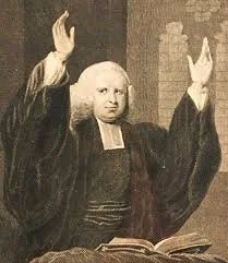 George Whitefield (1714–1770), English Anglican clergyman and renowned evangelist, was a key founder of Methodism and the evangelical movement. Born in Gloucester, he experienced conversion at Oxford, joined the Wesleys, and preached dynamically. He served as missionary to Georgia in 1738, then made multiple transatlantic trips (crossing 13 times), igniting the Great Awakening through open-air sermons to massive crowds across Britain and American colonies. Preaching ~18,000 sermons on the "new birth," he died in Newburyport, Massachusetts.